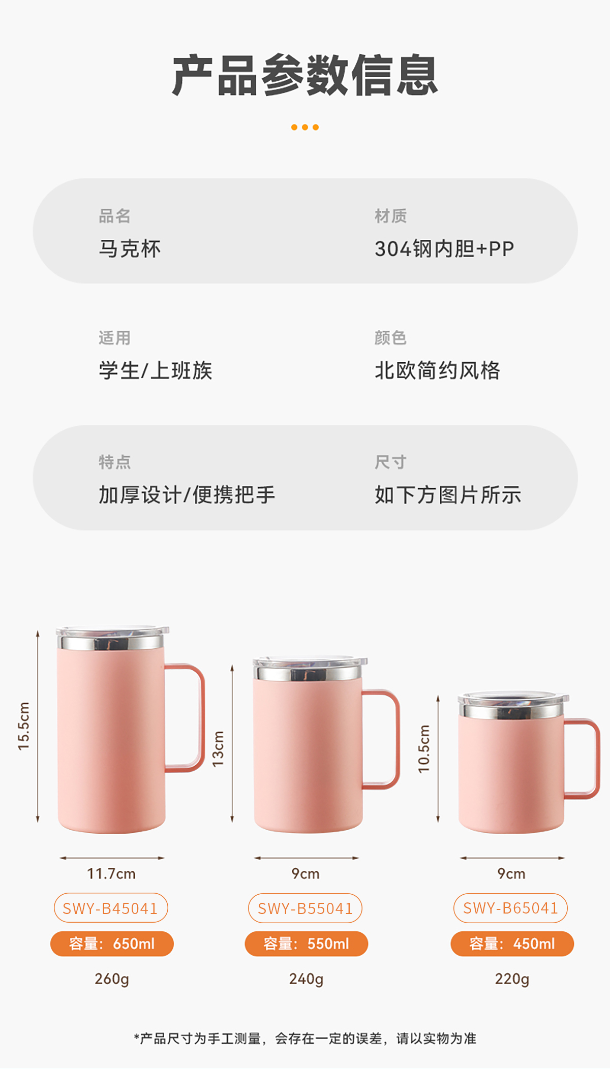 馬克杯450ml/550ml/650ml(推片蓋)