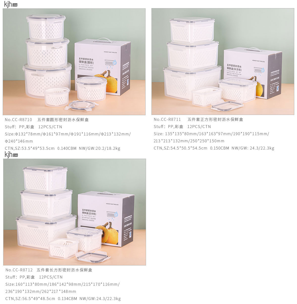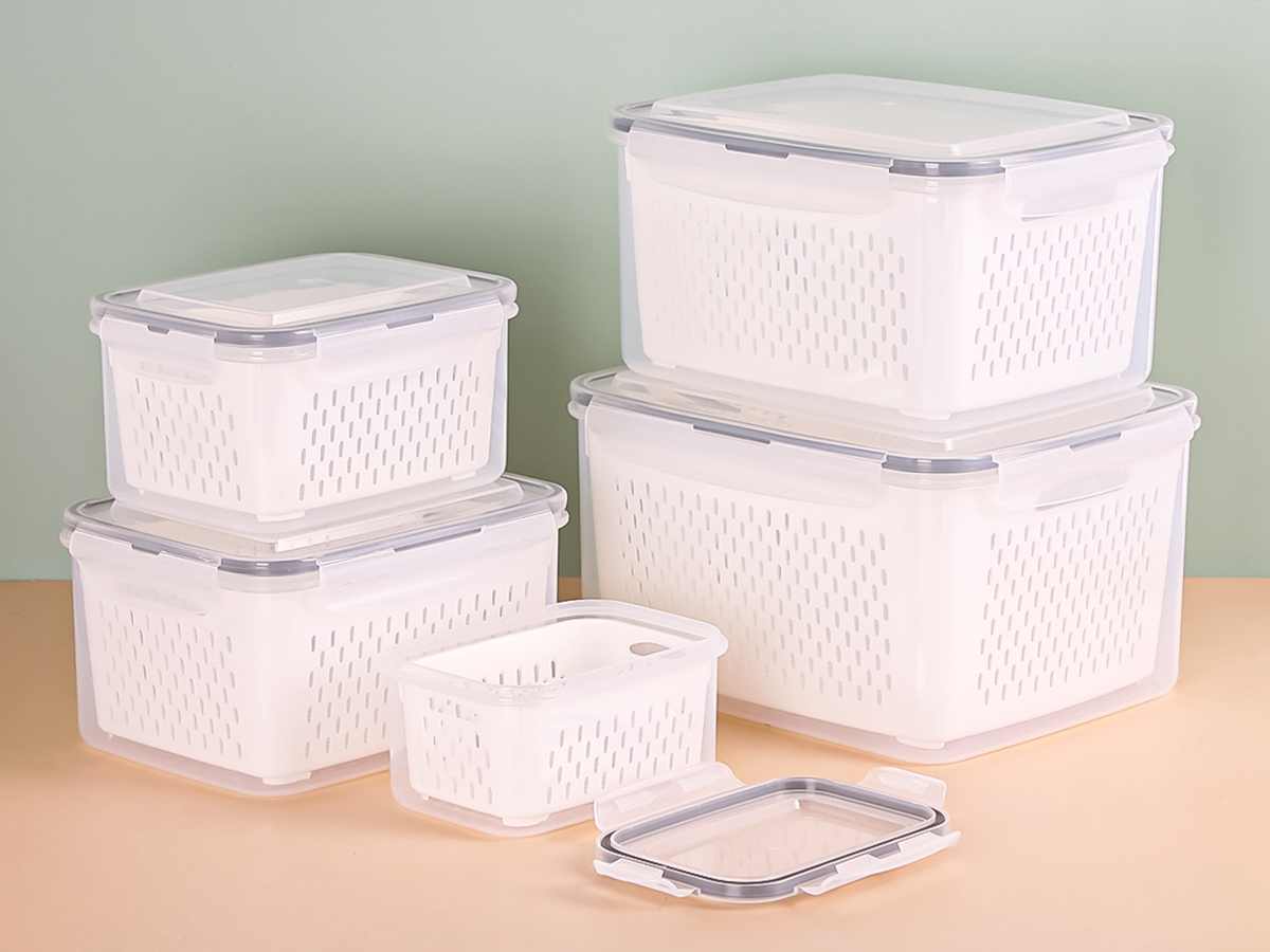 五件套圓形/正方形/長(zhǎng)方形密封瀝水保鮮盒