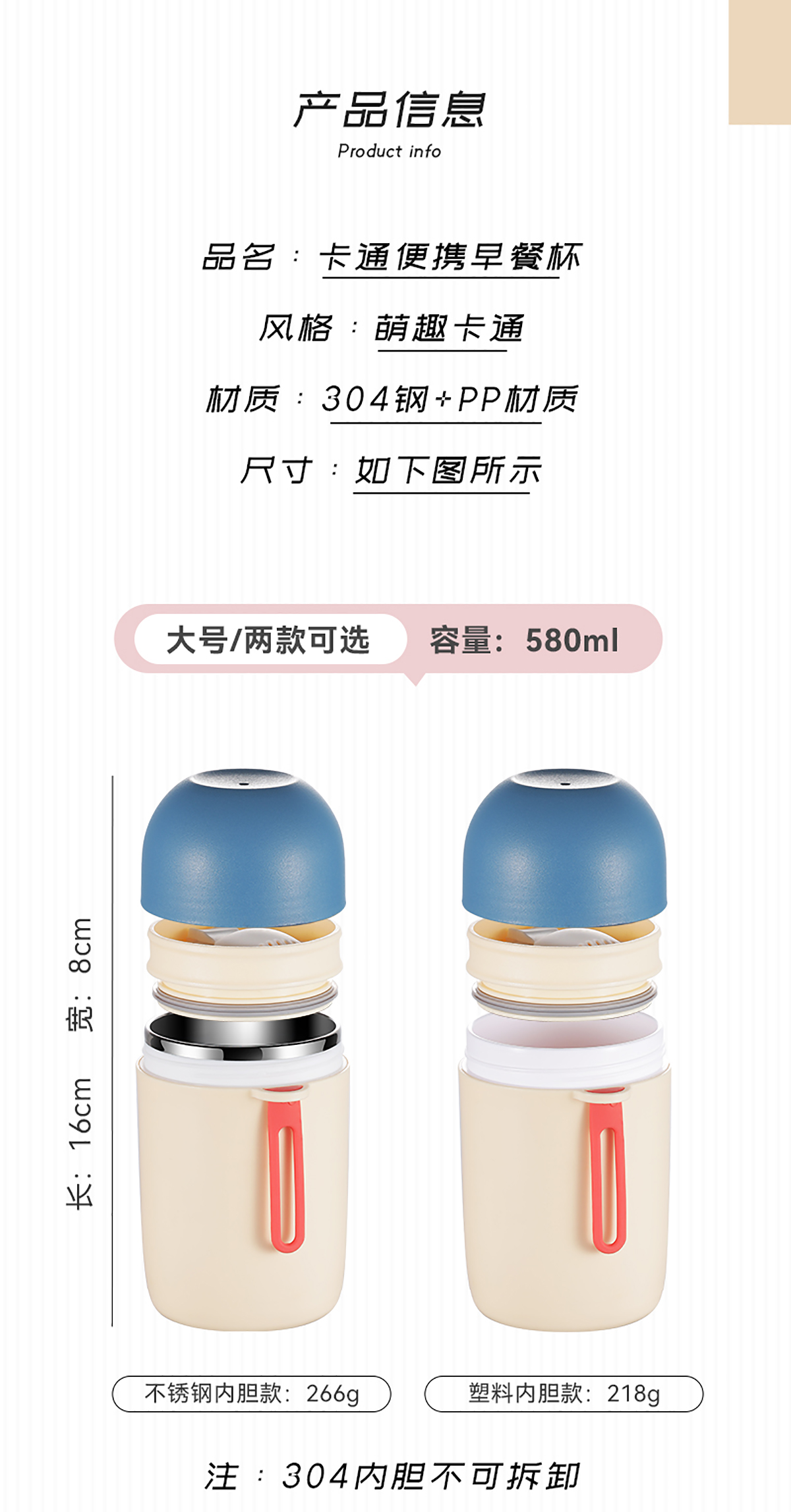 SWY-TB580W(不銹鋼款):直徑93*高165mm/580ml