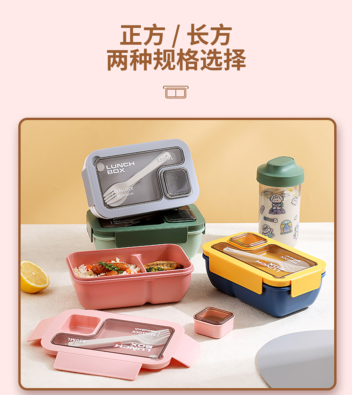 SWY-T01:長方形飯盒:195*119*79mm+水杯:直徑83*高155mm