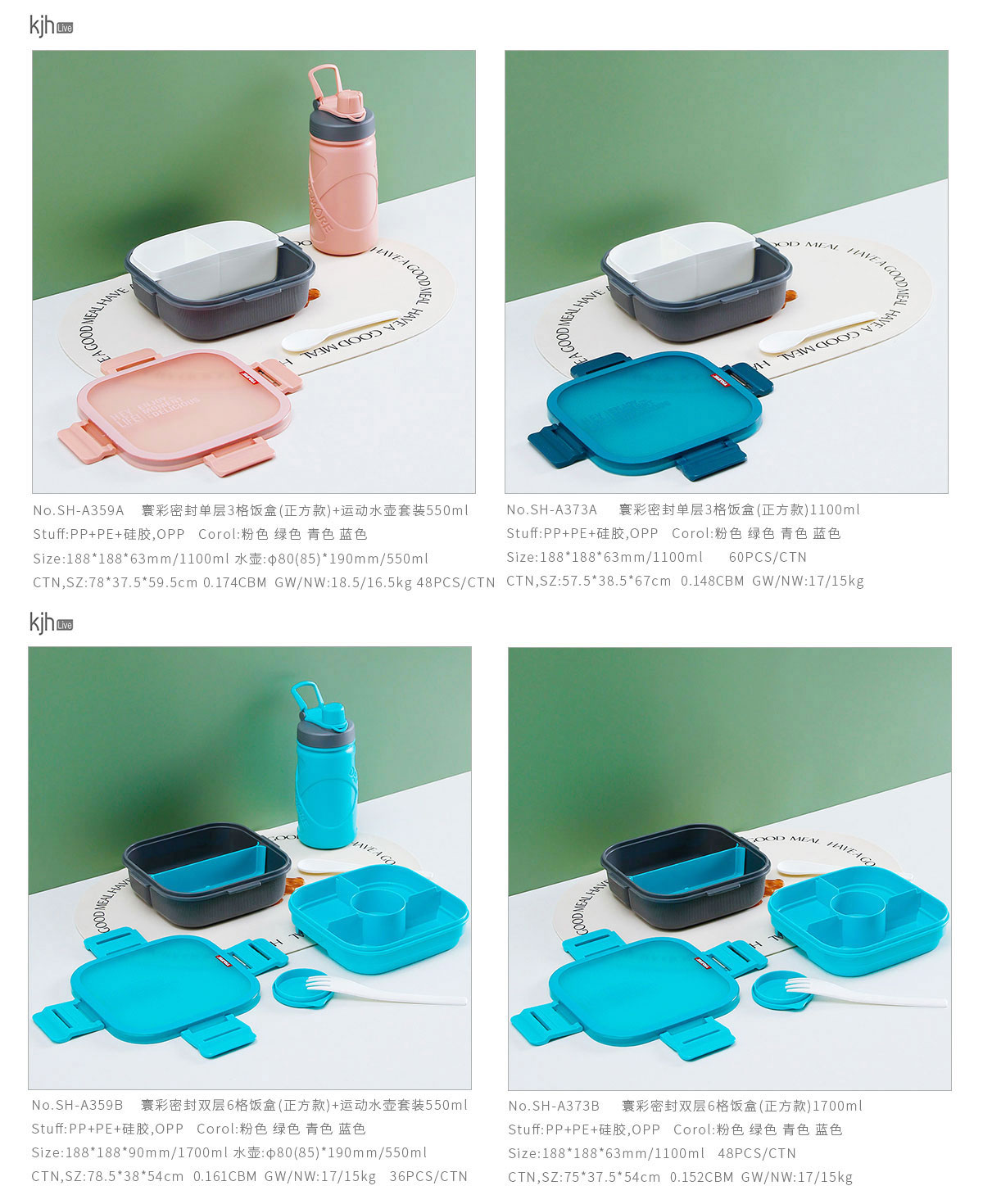 SH-A359A(單層套裝):188*188*63mm/1100ml 水壺:φ80(85)*190mm/550ml