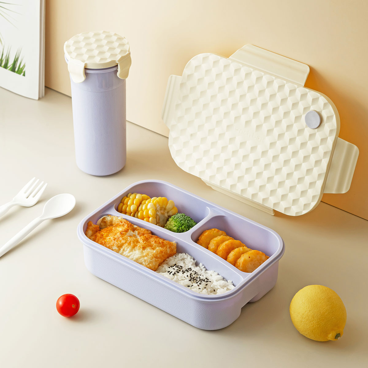 Size: 飯盒:230*160*66mm/1250ml 杯:84*65*175mm/500ml