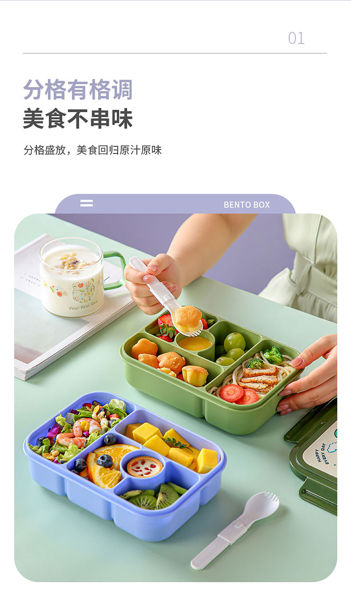 五格卡通便當盒1.25L