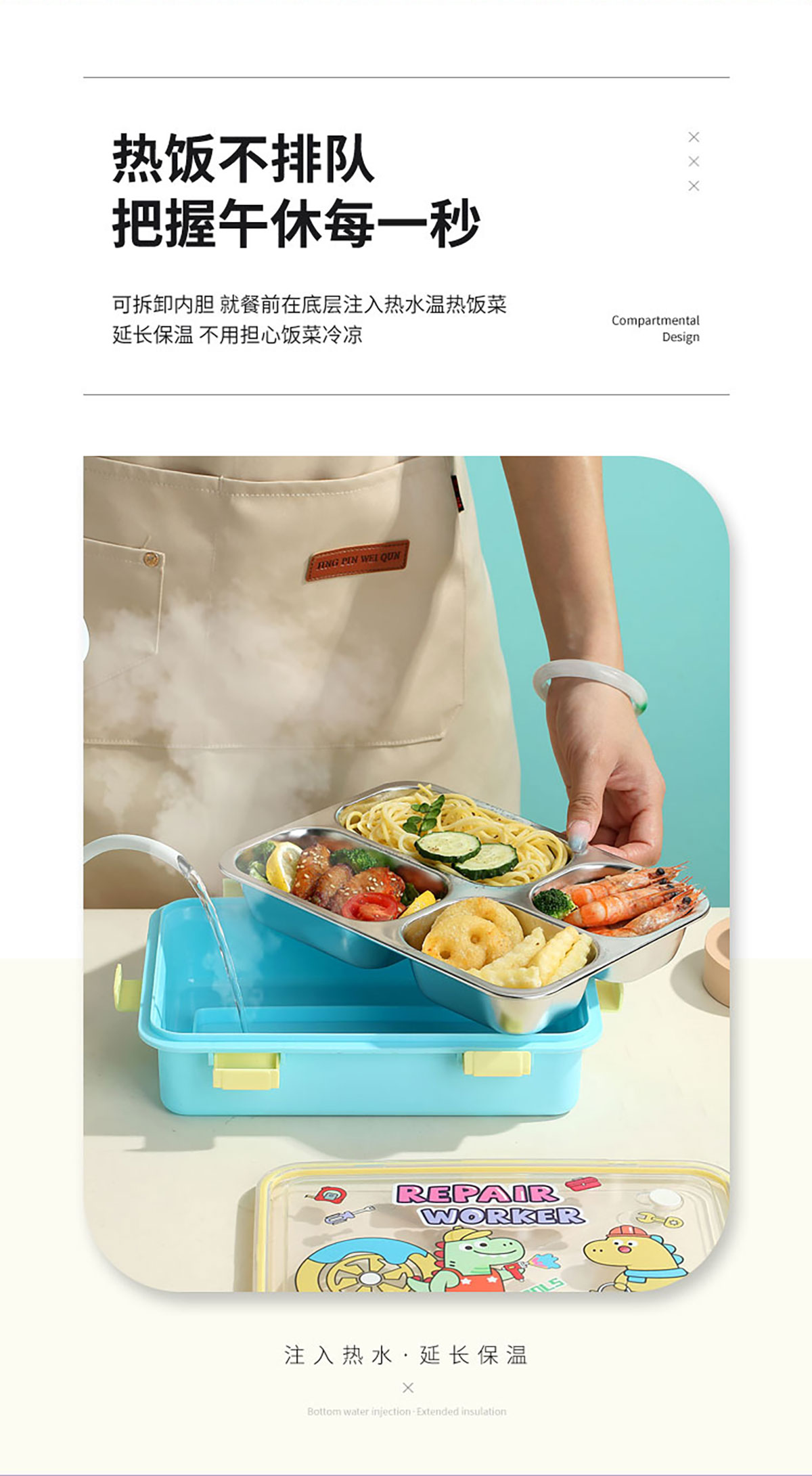 LX-7203(四格帶碗):254*182*65mm/850ml+不銹鋼湯碗150ml