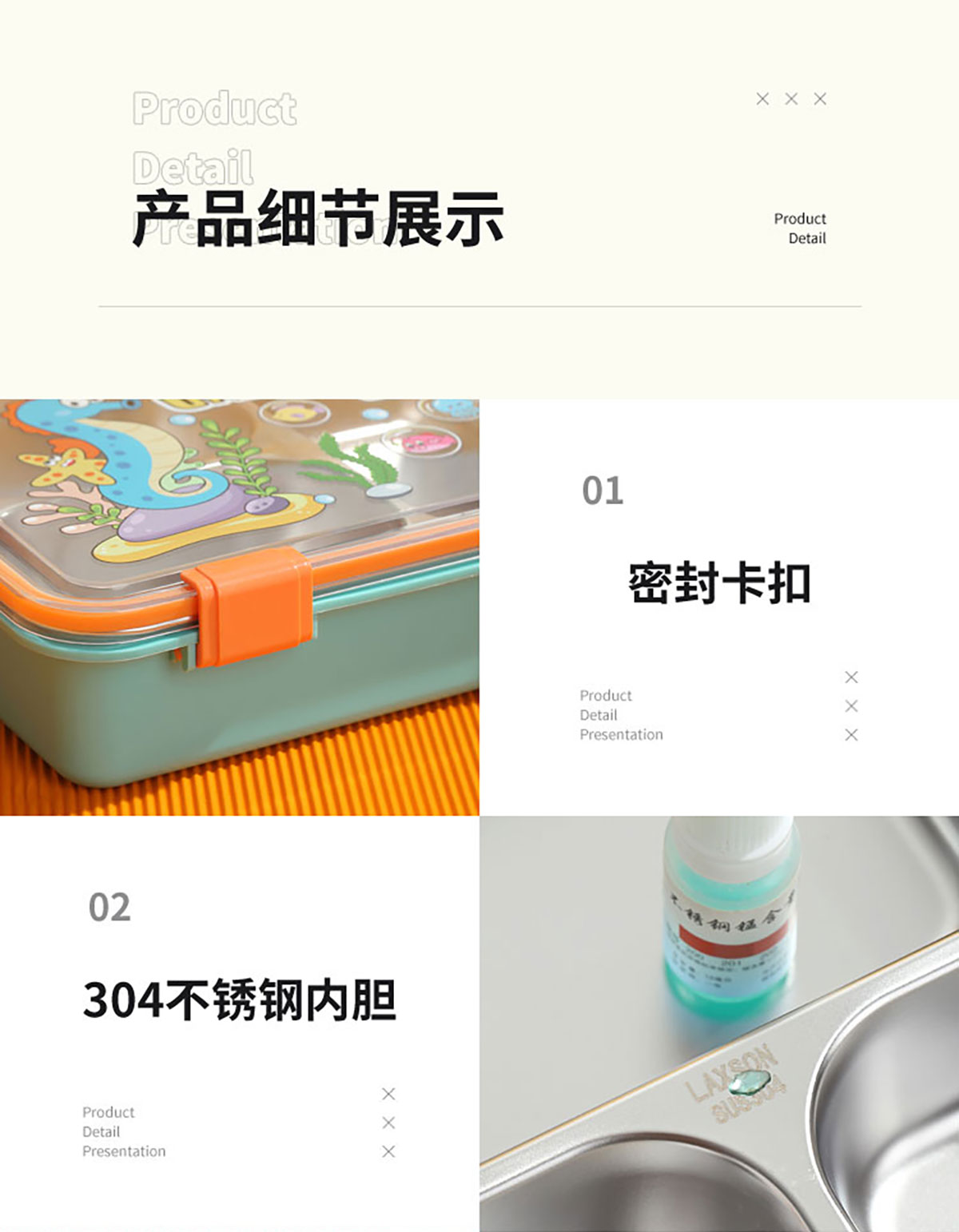 Size: LX-7201(三格):254*182*65mm/900ml