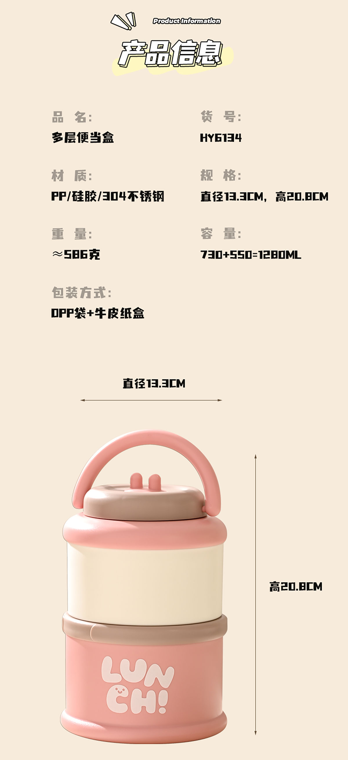 Size: 直徑133*高208mm/730+550=1280ml