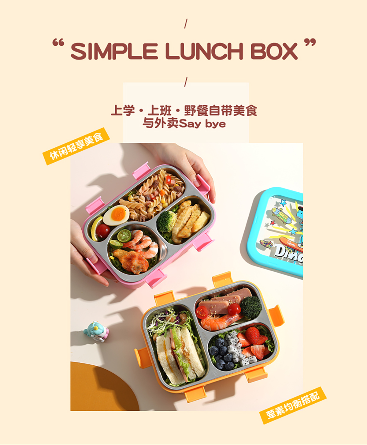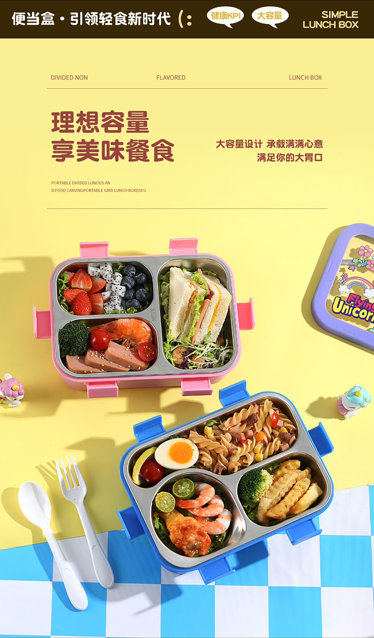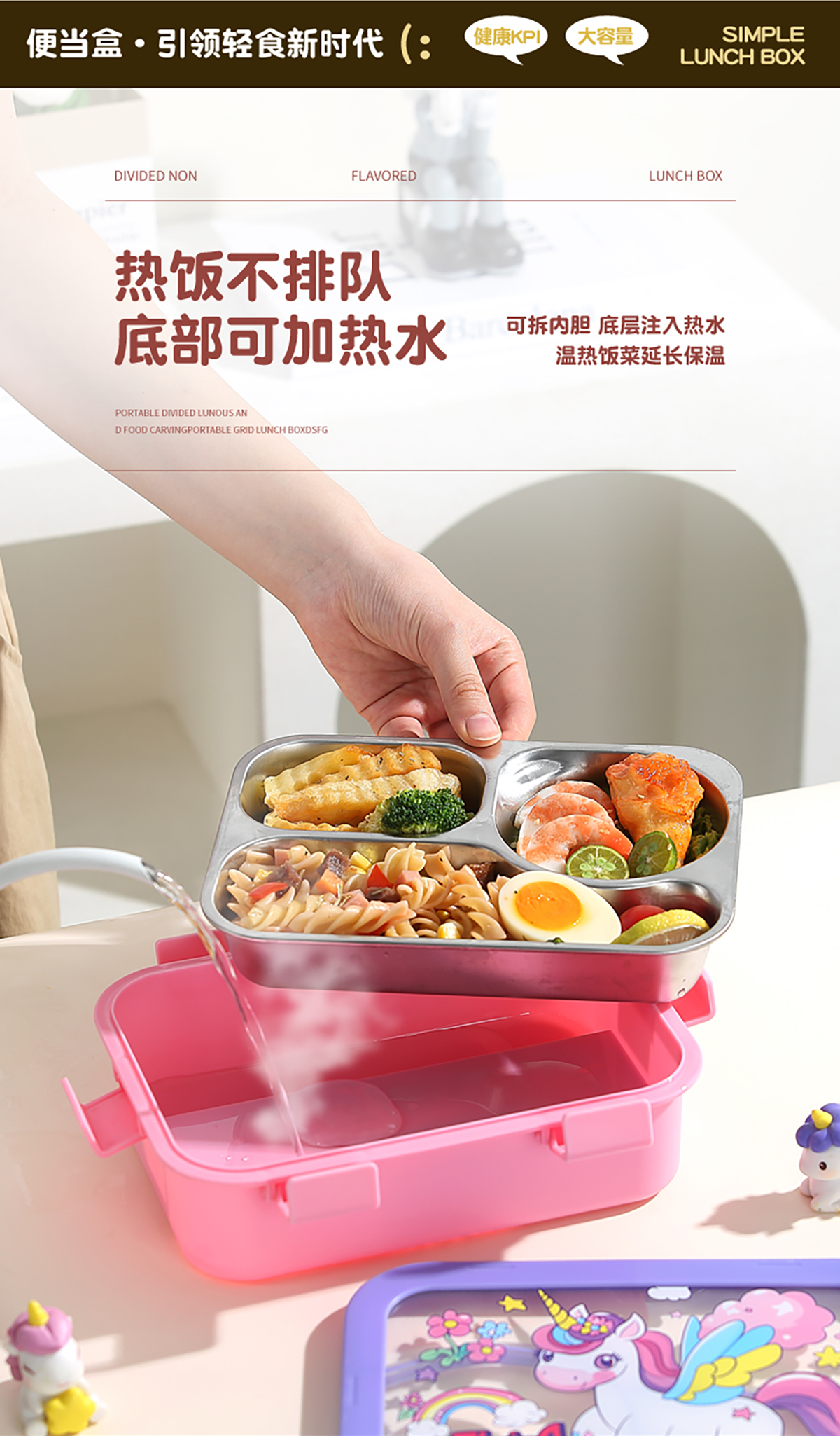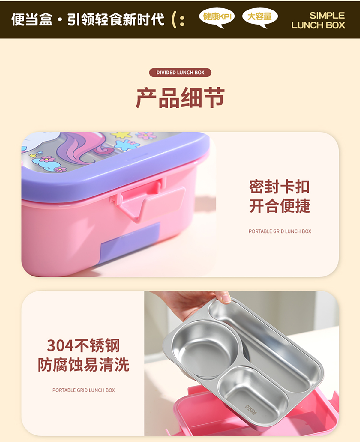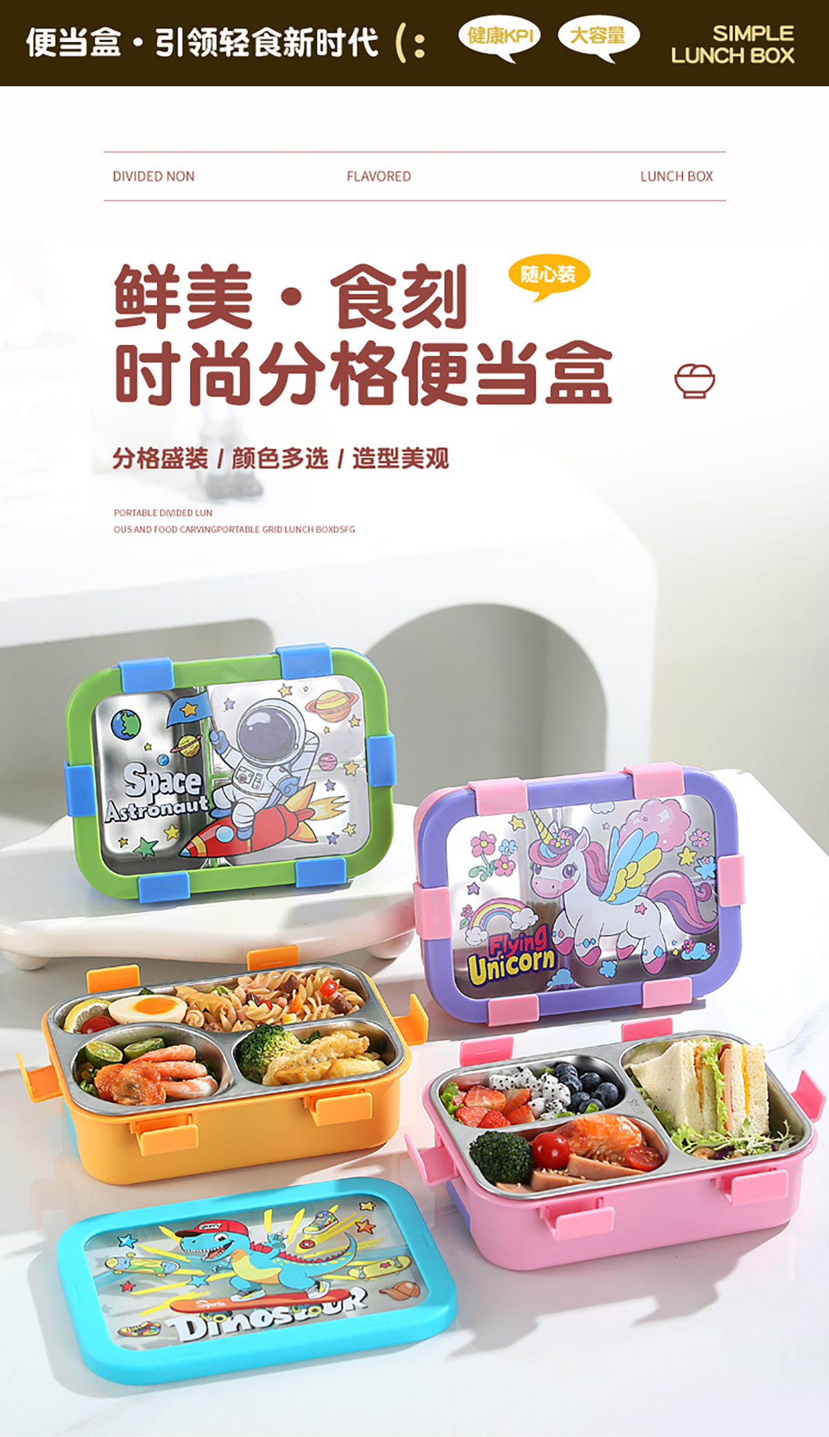 星樂便當(dāng)盒不銹鋼 卡通款 下單可選(三格700ml)/(三格碗型650ml)