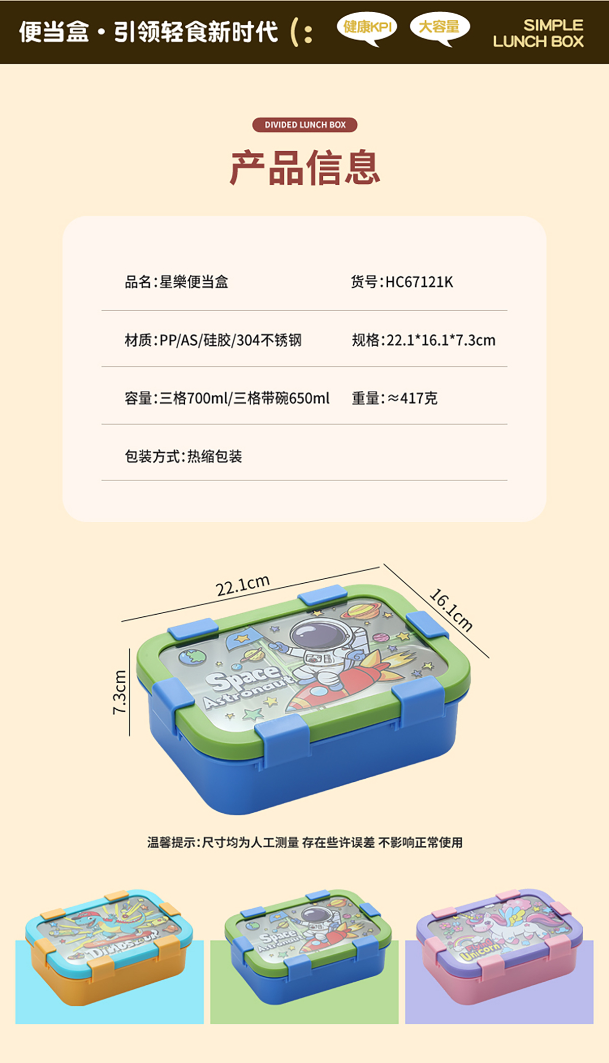 Size: 221*161*73mm/三格700ml/三格碗型650ml